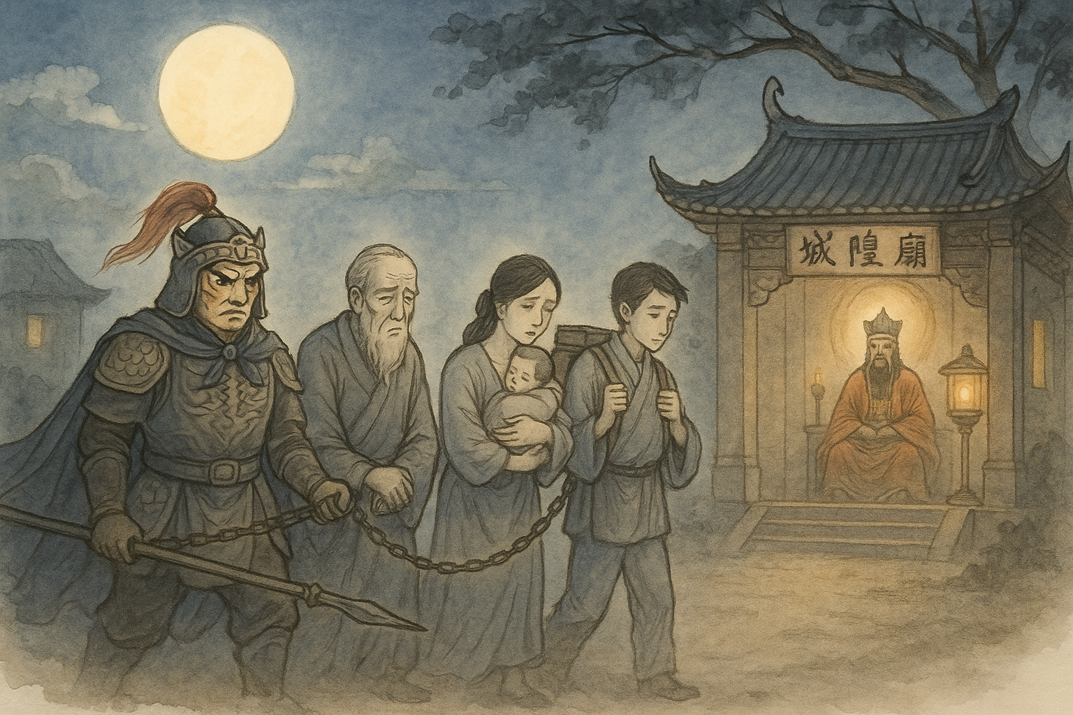 「此批逾假亡魂,暫由各地城隍好生代收。待中秋天赦之夜,再一併赦其小刑,押返幽冥,歸冊入籍。」